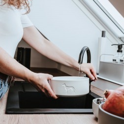 Időtlen linearitás és átgondolt funkcionalitás jellemzi az OSBY kerámia tálat. A négylábú barátok élvezik a napi ételadagjukat és a friss vizet a kellemesen nehéz étel- vagy itatótálból. A természetes színek és a klasszikus forma az elegánsan domborított kutyasziluettel az eredetiség és a tartósság érzését közvetítik. Az alján található szilikon peremnek és a viszonylag nagy súlynak köszönhetően a tál különösen biztonságos, és az érzékeny kutyák is könnyen elfogadják. Ha tartós, stabil és könnyen kezelhető edényt keres, jó döntést hozott az OSBY-val.
