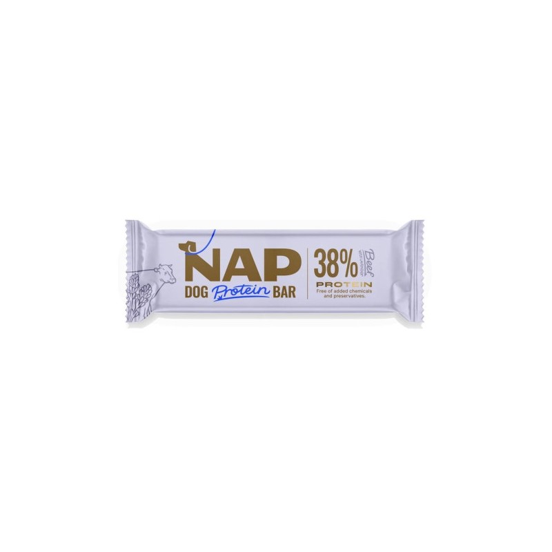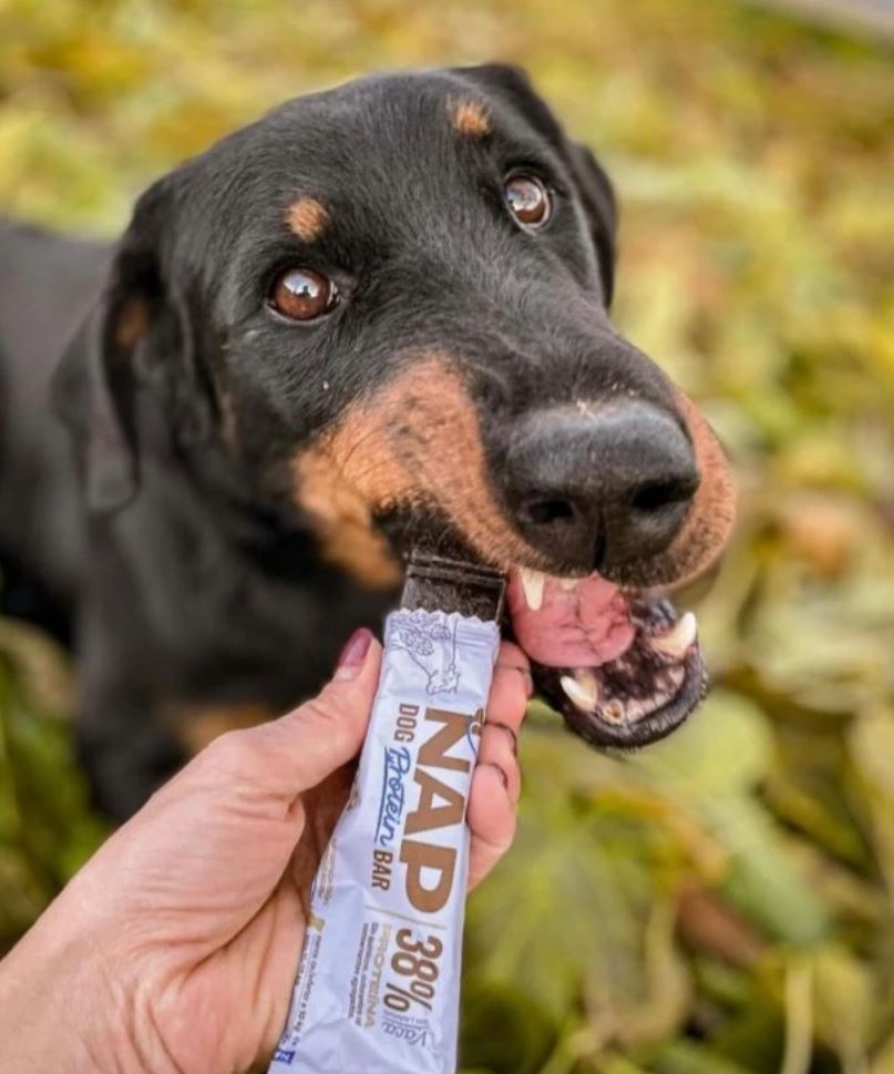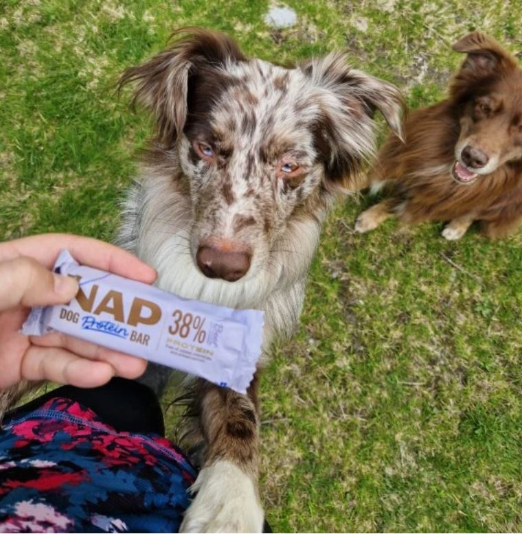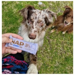 A NAP nem egy hagyományos jutalomfalat. Egy funkcionális protein szelet, amelyet kifejezetten aktív, sportoló, utazó vagy tréningben lévő kutyák igényeire fejlesztettek.