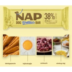 A NAP nem egy hagyományos jutalomfalat. Egy funkcionális protein szelet, amelyet kifejezetten aktív, sportoló, utazó vagy tréningben lévő kutyák igényeire fejlesztettek.