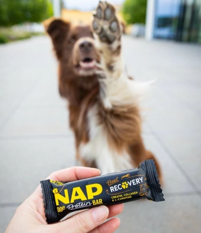 A NAP nem egy hagyományos jutalomfalat. Egy funkcionális protein szelet, amelyet kifejezetten aktív, sportoló, utazó vagy tréningben lévő kutyák igényeire fejlesztettek.