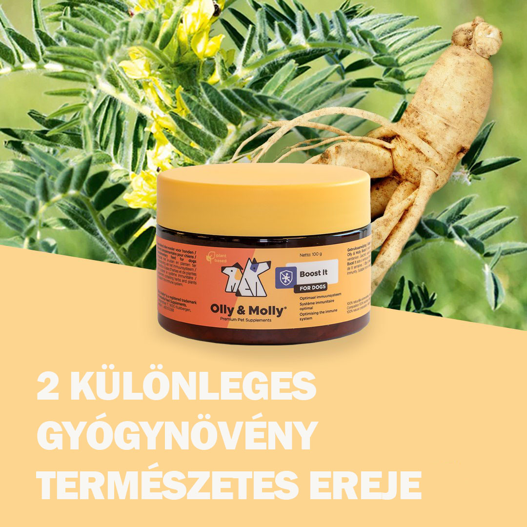 Az Olly & Molly Boost It támogatja a kutyák természetes immunrendszerét. Ajánlott a használata: