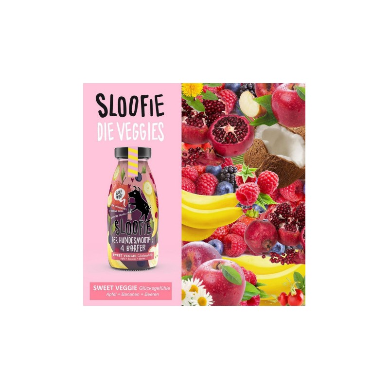 Összetevők: Víz 60,8%, Banán 12,2%, Alma 12,2%, Bogyós gyümölcsök (Málna, Eper, Szeder, Ribizli, Vadáfonya), Csipkebogyó 1,2%, Gránátalma 1,2%, Pitypang 0,1%, Kamilla 0,1%, Chia mag, Kókuszolaj