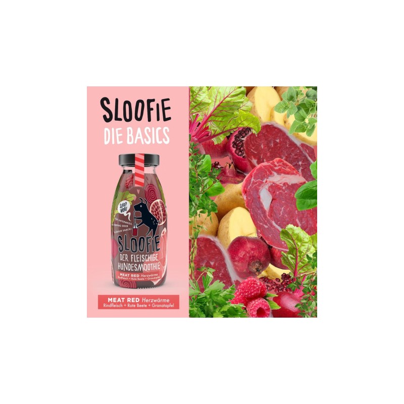 A MEAT RED monoprotein marhahúsból készült SLOOFIE, amely erőt, stabilitást és energiát ad a mindennapokhoz. A marhahús kiváló minőségű fehérjeforrás, gazdag vasban és B-vitaminokban, támogatja az izomműködést és a vérképzést. A cékla segíti a keringést és a sejtek oxigénellátását, a gránátalma és a málna antioxidánsai pedig védik a sejteket és erősítik az immunrendszert.