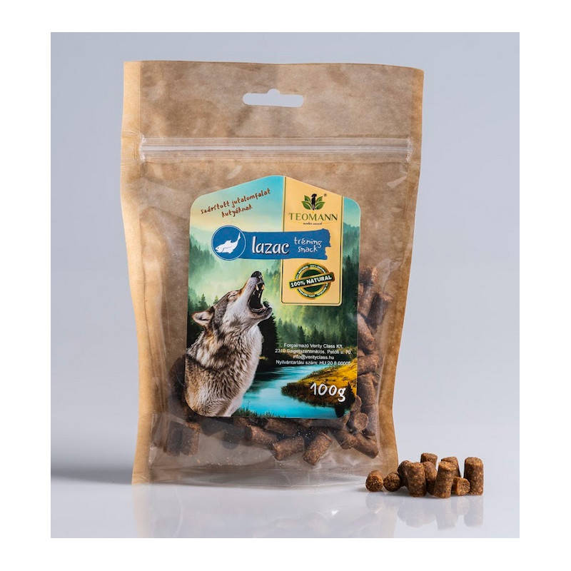 Összetétel: 88% lazac, 8% lenmagliszt, 2% burgonya-pehely, 15% rizsliszt, 3,5% zselatin, 1,5% fűszerek